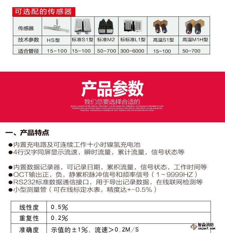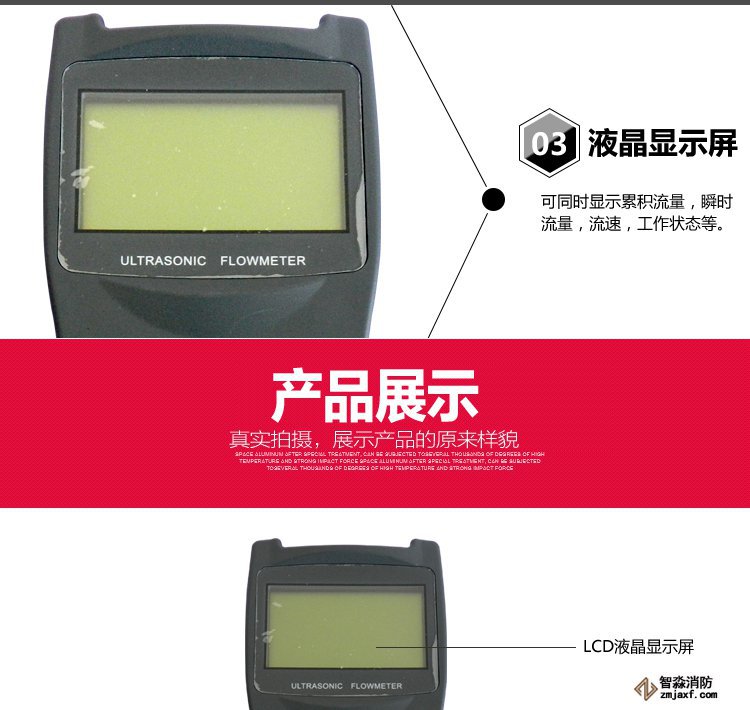 手持式超聲波流量計。其測量管徑在0-700mm,精度±1%。